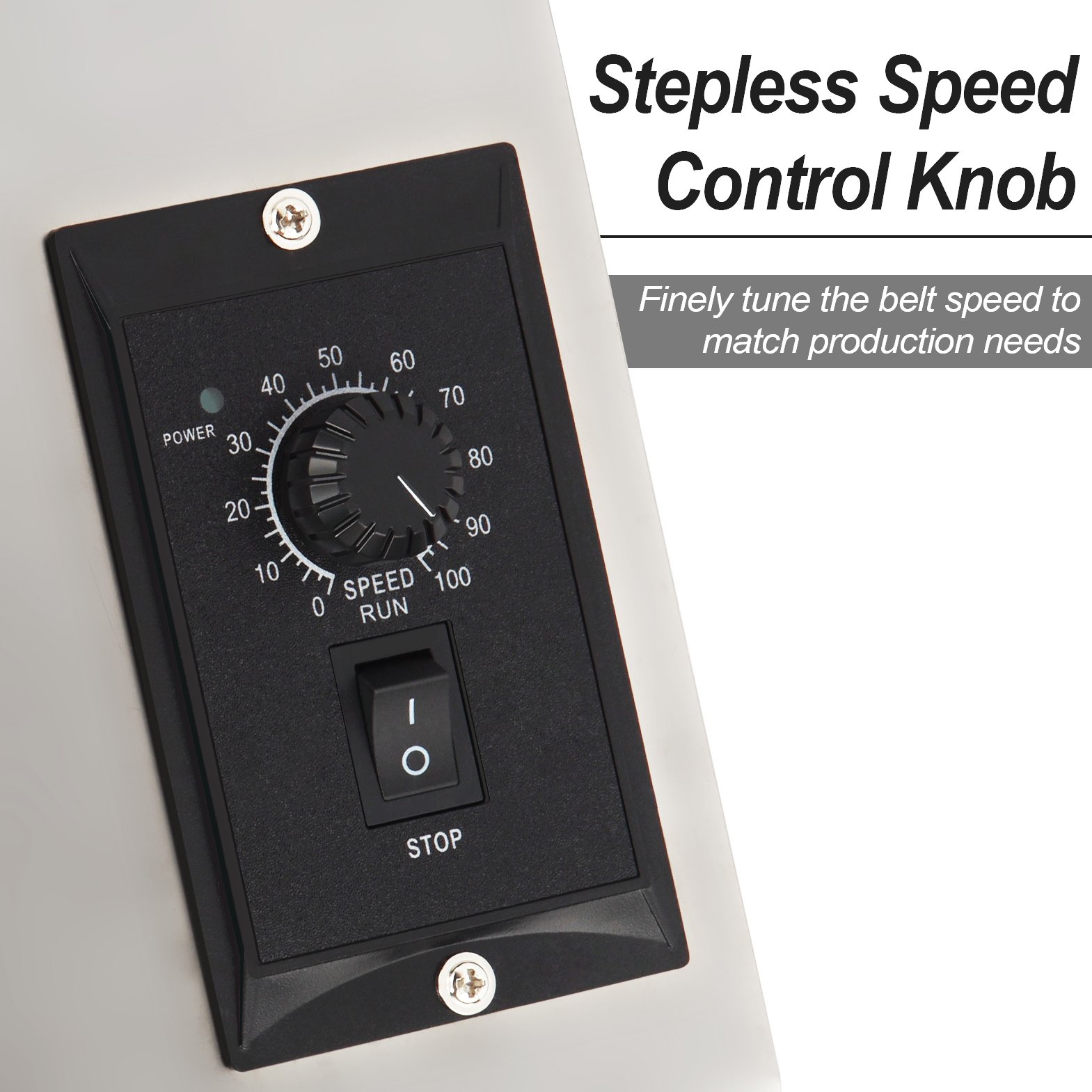 · Finely tune the belt speed with a step-less control knob to match production needs
