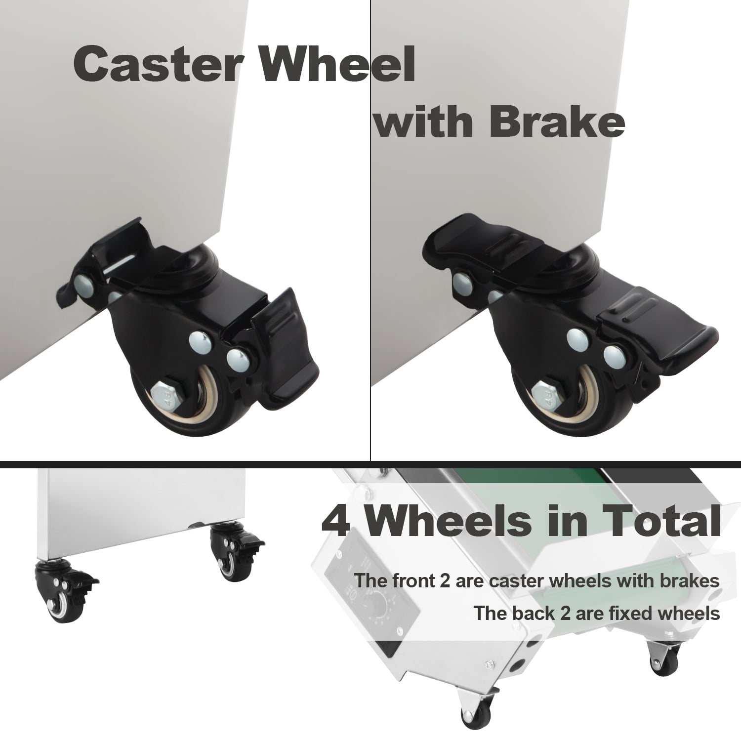 · Equipped with 4 wheels — front 2 are brake-able casters, back 2 are fixed